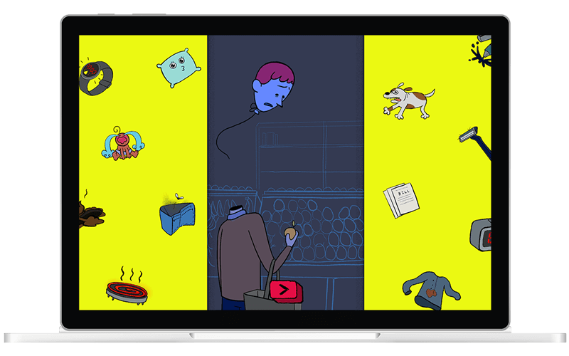 “Wittle” presents both real and raw anecdotes from comedians who suffer from depression. Their stories are transformed into short animated stories and casual games that can be played for free on any device without downloading.